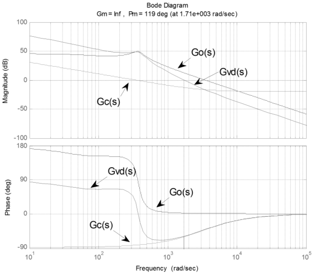 The PI controller gains are designed with the small signal model transfer function Gvd(s); thus, the open loop transfer function is expressed as: