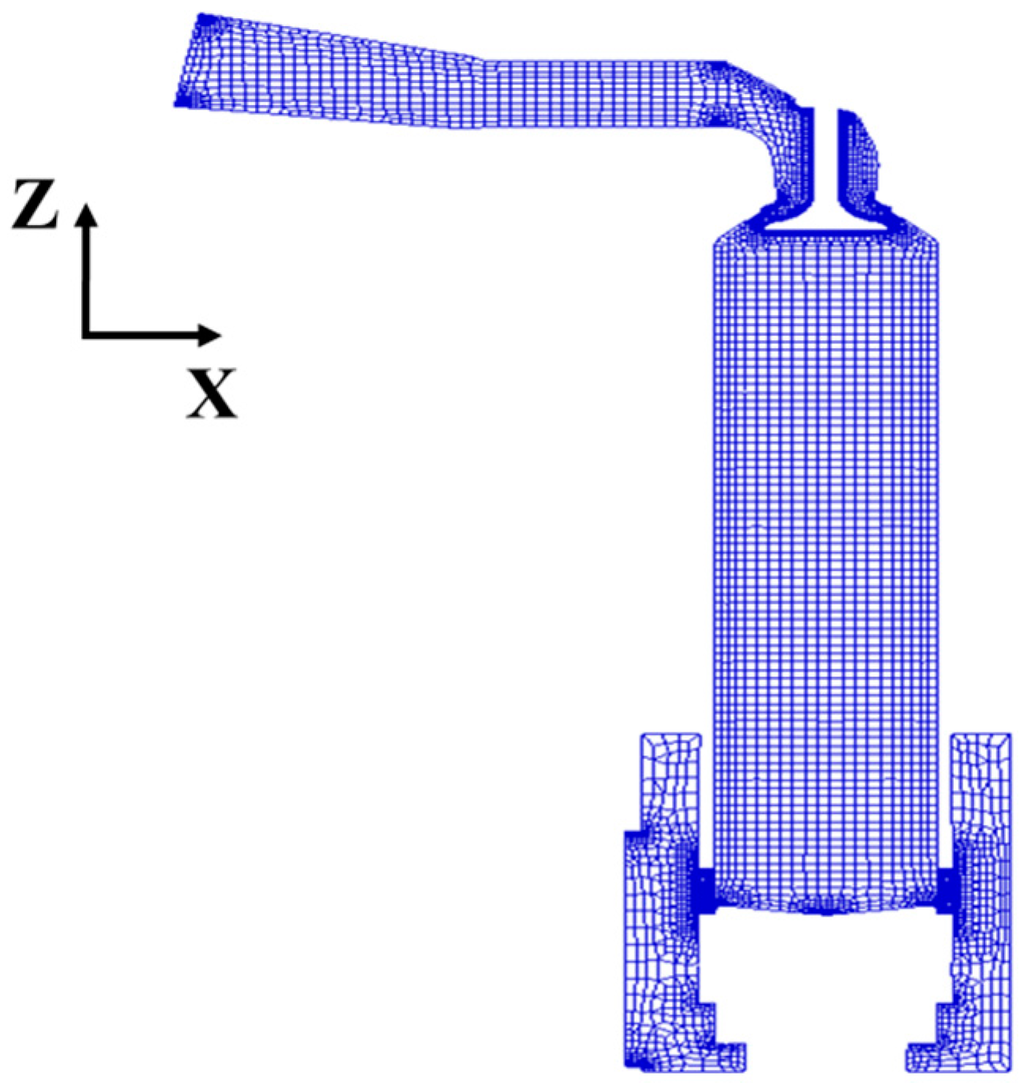 Figure 3 shows the volumes cells when piston is at Bottom Dead Center (BDC). In this paper, BDC is defined as 180 crank angle degree (°CA), and TDC (Top Dead Center) is defined as 360 °CA. The working process simulation was started from the opening of exhaust valve (EVO), and stopped at the next time of EVO. The k-ε turbulence model was applied. The Wave Droplets Breakup model [16] was selected for the calculation of atomization process. The extended coherent flame model was used as the combustion model [17]. The Extended Zeldovich model in the emission models was selected to calculate the NOx formulation [18].