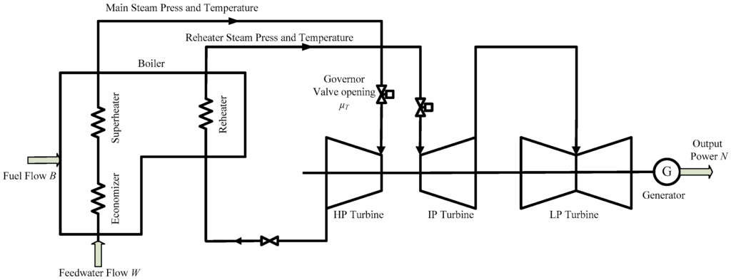 - Yan, S.; Zeng, D.L.; Liu, J.Z.; Liang, Q.J. A simplified non-linear model of a once-through boiler-turbine unit and its application. Chin. Soc. Electr. Eng. 2012, 32, 126–134. [Google Scholar]