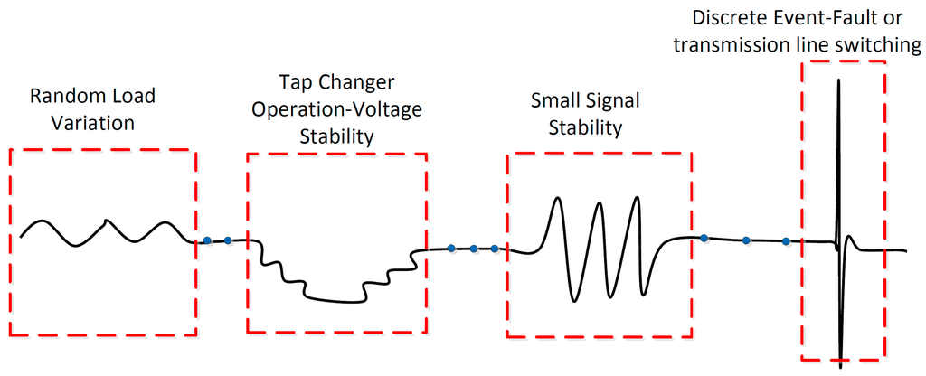 Figure 1 shows a signal containing the power system response to typical events, which leads to the dynamics at different time scales. Typical power system dynamic phenomenon that can be identified from different components of PMU signals are: