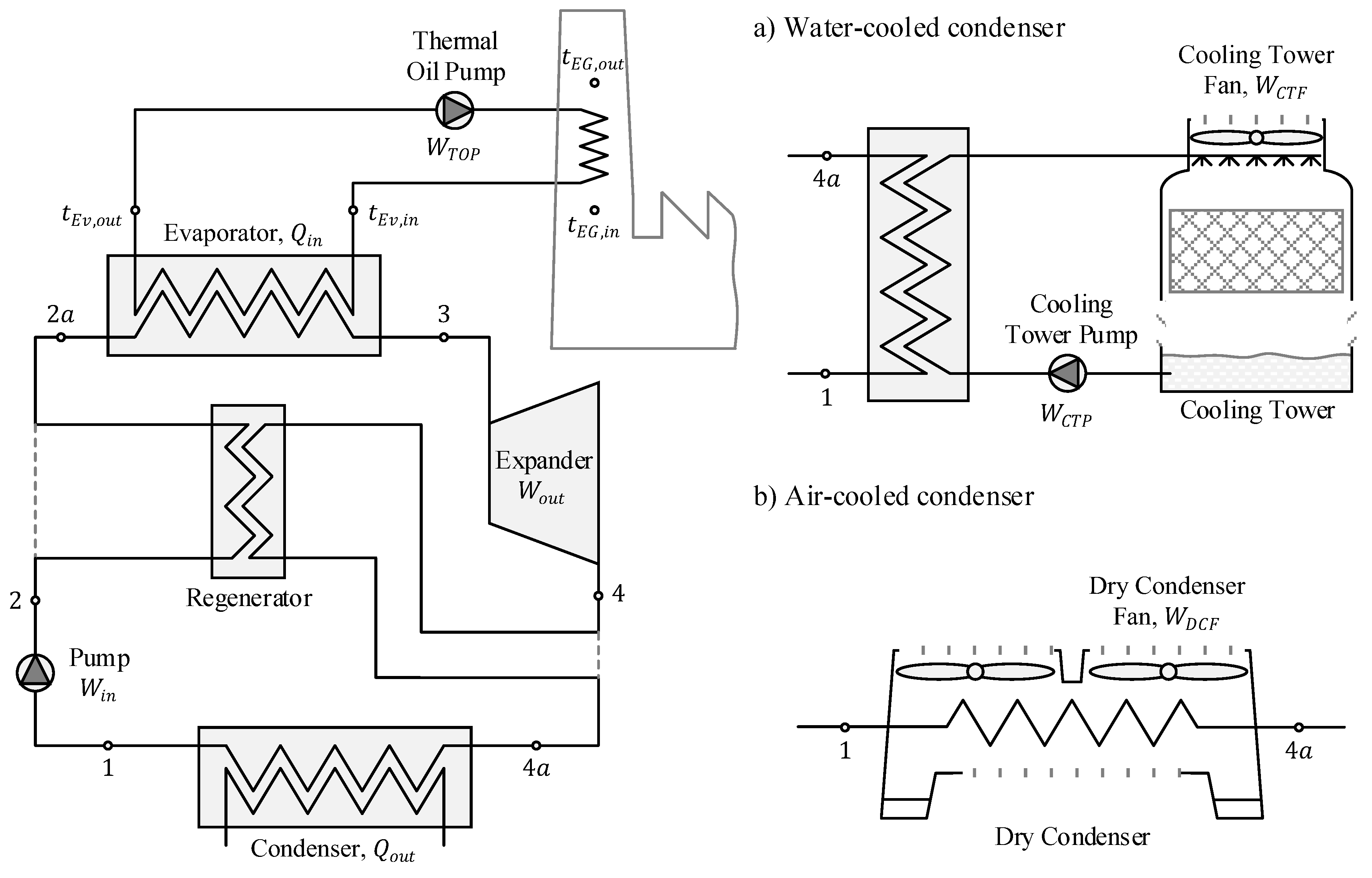 - Auld, A.; Berson, A.; Hogg, S. Organic Rankine cycles in waste heat recovery: A comparative study. Int. J. Low Carbon Technol. 2013, 8, 9–18. [Google Scholar] [CrossRef]