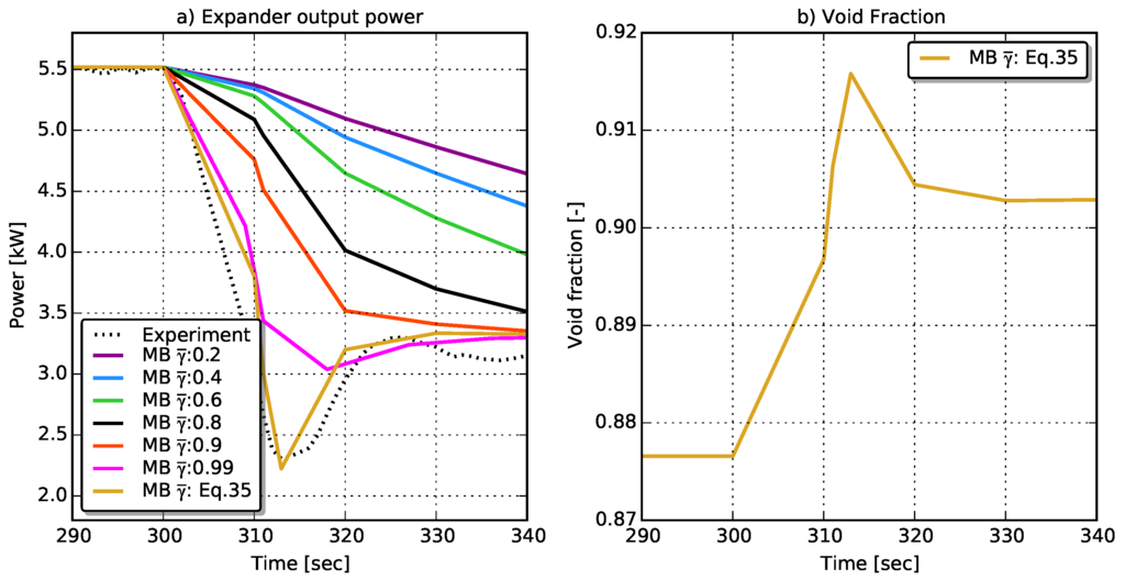 - Assuming a constant void fraction in the MB approach results in an overestimation of the dynamics (i.e., leading to slower response times), making it unsuitable for modeling a small capacity heat exchanger. From the proposed parametric analysis, it is clear that the average void fraction is inversely proportional to the time constant characterizing the evaporator model.