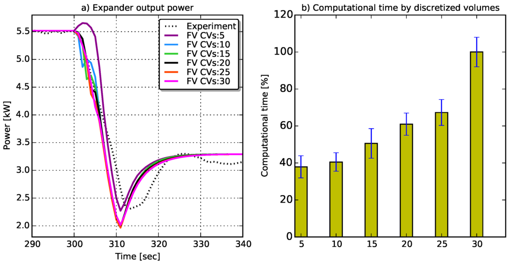 - When using an FV model, the level of discretization needs to be accurately selected. In the case of a small-scale ORC unit using plate heat exchangers, a minimum number of 20 nodes is recommended to avoid numerical inconsistency in the simulation results.