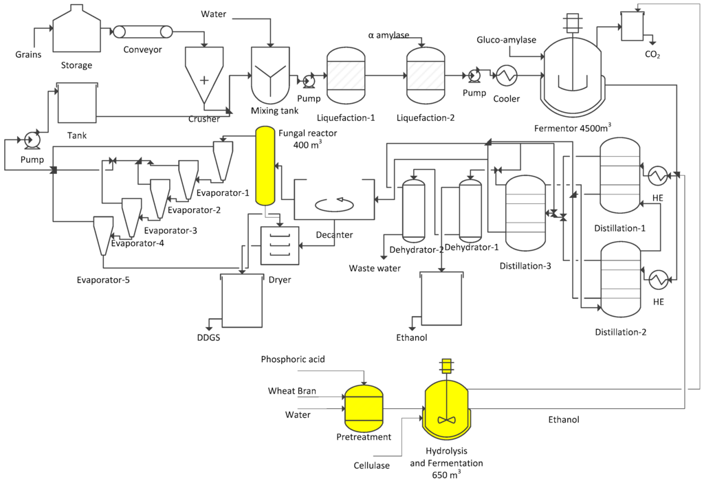 In addition, the profit margin from the ethanol and the byproducts is relatively small, meaning that any small fluctuation could adversely affect the profitability of the plant [7]. For this purpose, the concept of biorefineries is necessary. One possibility is using ascomycetes or zygomycetes fungi to produce fungal biomass for animal feed [8]. This biomass contains high levels of protein, and it could be sold as a feed, thus, the demand for such products is increasing steadily. Other possible products from integrated fungal processes are dietary supplements, and superabsorbents [9]. This study exploits such biorefinery options.