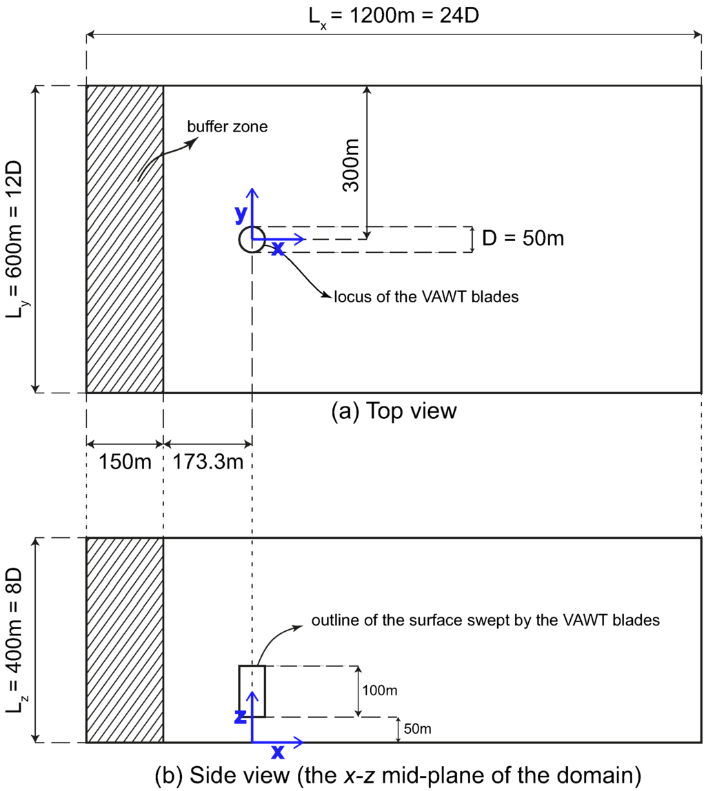 Acknowledging the prospects of VAWTs as alternative wind energy extractors along with HAWTs in a future clean-energy outlook, which is likely to be marked by diversity, targeted research on VAWTs’ performance is deemed to be highly useful and necessary. One of the research targets, which is especially crucial in designing potential VAWT farms, is to characterize VAWT wakes; a target which is still considerably underachieved for VAWTs, particularly with respect to HAWTs. In this view, one of the approaches that can greatly contribute to the cause is to use turbulence-resolving numerical simulation techniques, which can provide plenitude of high-resolution spatial and temporal information about the flow field and lead to valuable insight into the behavior of the turbine wake.