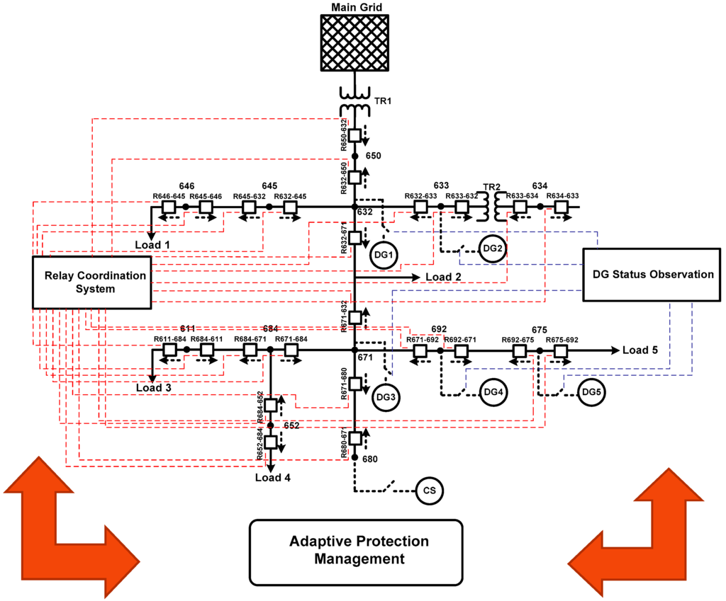 - Since the modified system is subjected to bi-directional power flows, new relays for the opposite direction are added near the main relays.