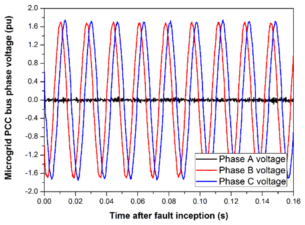 In autonomous mode, the faulty phase may be detected readily using the PCC bus voltage. As shown in Figure 20, the A phase-to-neutral voltage was almost zero during the fault. This clearly shows that the faulty phase is phase A.