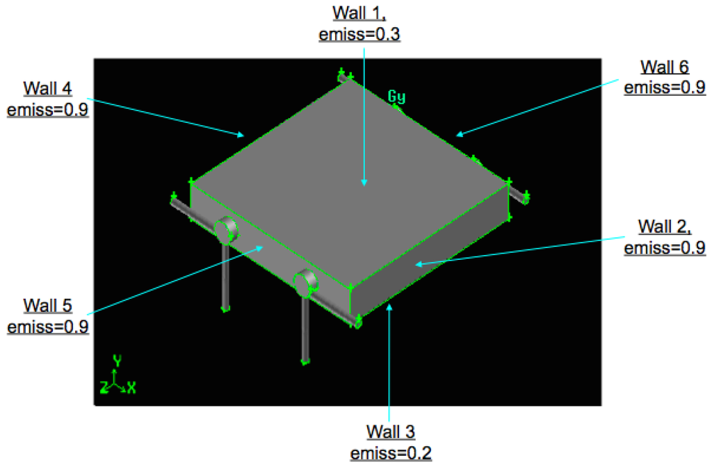 The walls are emitting surfaces, according to the emissivity values reported in Figure 5.