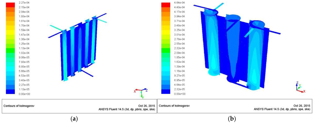 The Kolmogorov scale provides an indication of the actual flow regime and permits understanding the feasibility of a direct numerical simulation (DNS) inside the chamber.