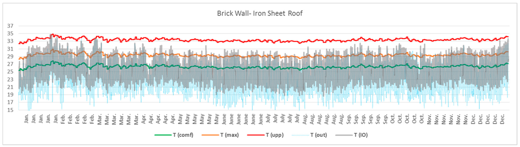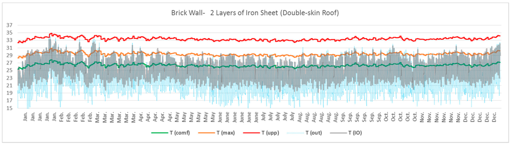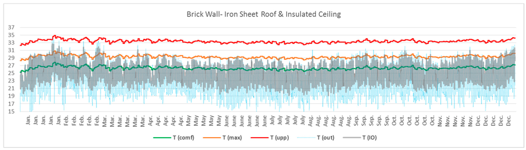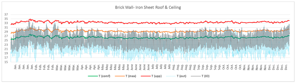 3.2.2. Brick Walls with Iron Sheet Roof and Insulated Ceiling