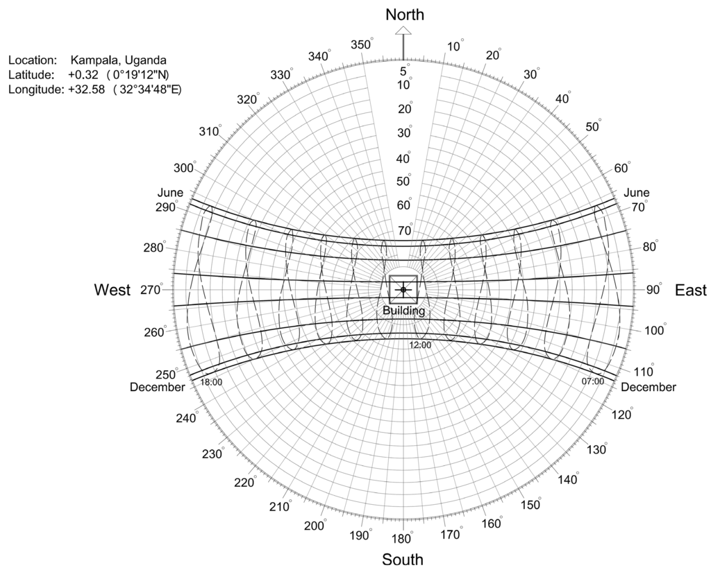 Sun path diagram for Kampala.