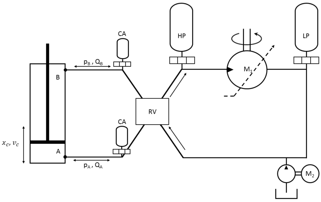 - Andersen, T.O.; Hansen, R.H.; Hansen, A. Simulation of Utilisation of Pressure Propagation for Increased Efficiency of Secondary Controlled Discrete Displacement Cylinders. In Proceedings of the 16th International Conference on Fluid Dynamic and Mechanical & Electrical Control Engineering (FDMECE), Chongqing, China, 10–11 November 2012.