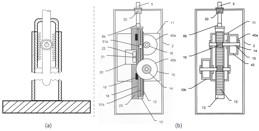 - Corey, G. Rack and Pinion Wave Motor Power Plant. US Patent US4,108,578, 22 August 1978. [Google Scholar]