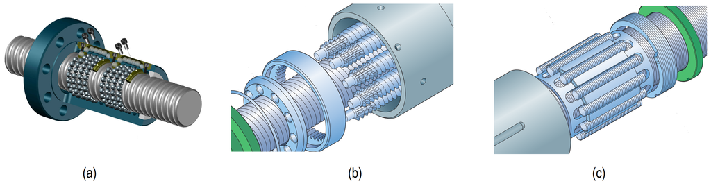 - SKF Group leaflet. Roller Screws; PUB MT/P1 14489 EN; SKF Group: Gothenburg, Sweden, April 2014. [Google Scholar]