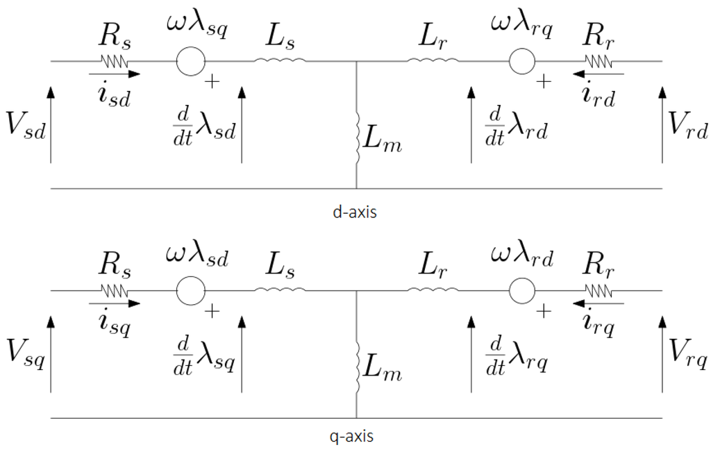 - Park, R.H. Two-reaction theory of synchronous machines generalized method of analysis-part I. Trans. Am. Inst. Electr. Eng. 1929, 48, 716–727. [Google Scholar] [CrossRef]