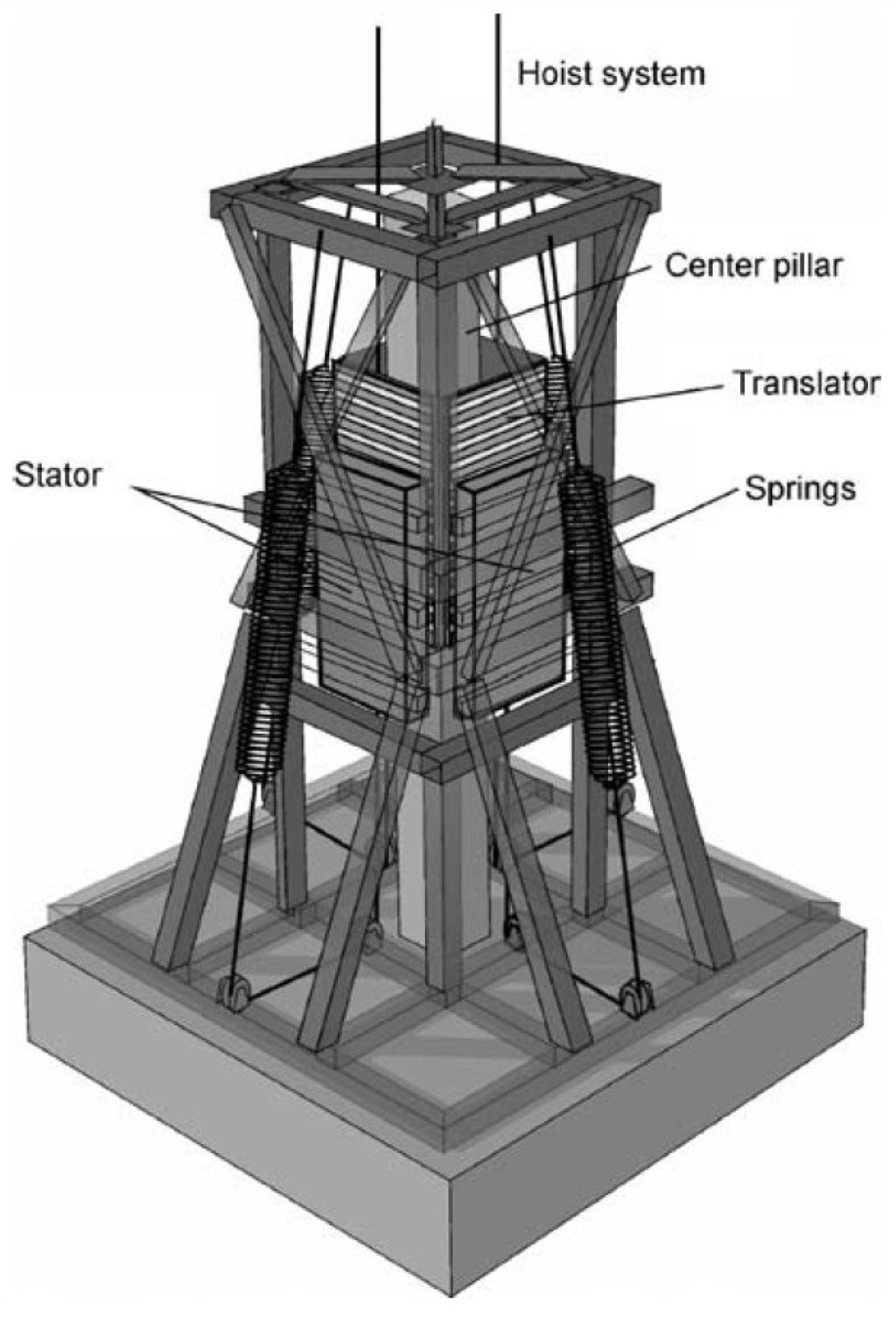 - Agamloh, E.B.; Wallace, A.K.; von Jouanne, A. A novel direct-drive ocean wave energy extraction concept with contact-less force transmission system. Renew. Energy 2008, 33, 520–529. [Google Scholar] [CrossRef]