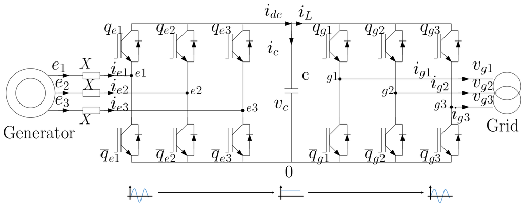 - Bai, H.; Wang, F.; Xing, J. Control strategy of combined PWM rectifier/inverter for a high speed generator power system. In Proceedings of the 2nd IEEE Conference on Industrial Electronics and Applications, Harbin, China, 23–25 May 2007; pp. 132–135.