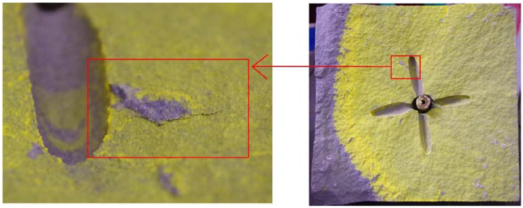 Based on the numerical analysis models, zero-, two- and four-branched borehole models were chosen as test models. The specimens were processed from homogeneous sandstone cut into cubes of 300 × 300 × 300 mm3. A diamond-tipped drill bit was used to drill a center hole from the upper surface into the cube, and then an abrasive water jet nozzle was inserted to erode the sandstone at the bottom of the center hole. The diameter of the center hole is 25 mm, and its length is 150 mm. For the different model specimens, the erosion holes were variously branched (zero, two or four branches). To ensure standardization of the length of erosion holes, the target distance, insertion distance and water pressure (10 MPa) were controlled for each specimen, as well as a standard abrasive concentration of 5% and erosion time of 20 s.