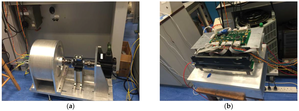 Prototype of the DSFM motor and its controller: (a) test machine; and (b) back-to-back controller.