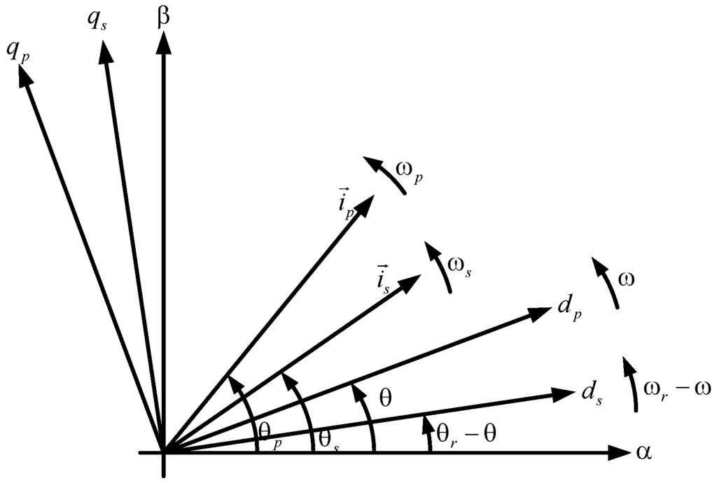 where θp, θs, and θr are the electric angles of the primary winding current, secondary winding current, and rotor, respectively.