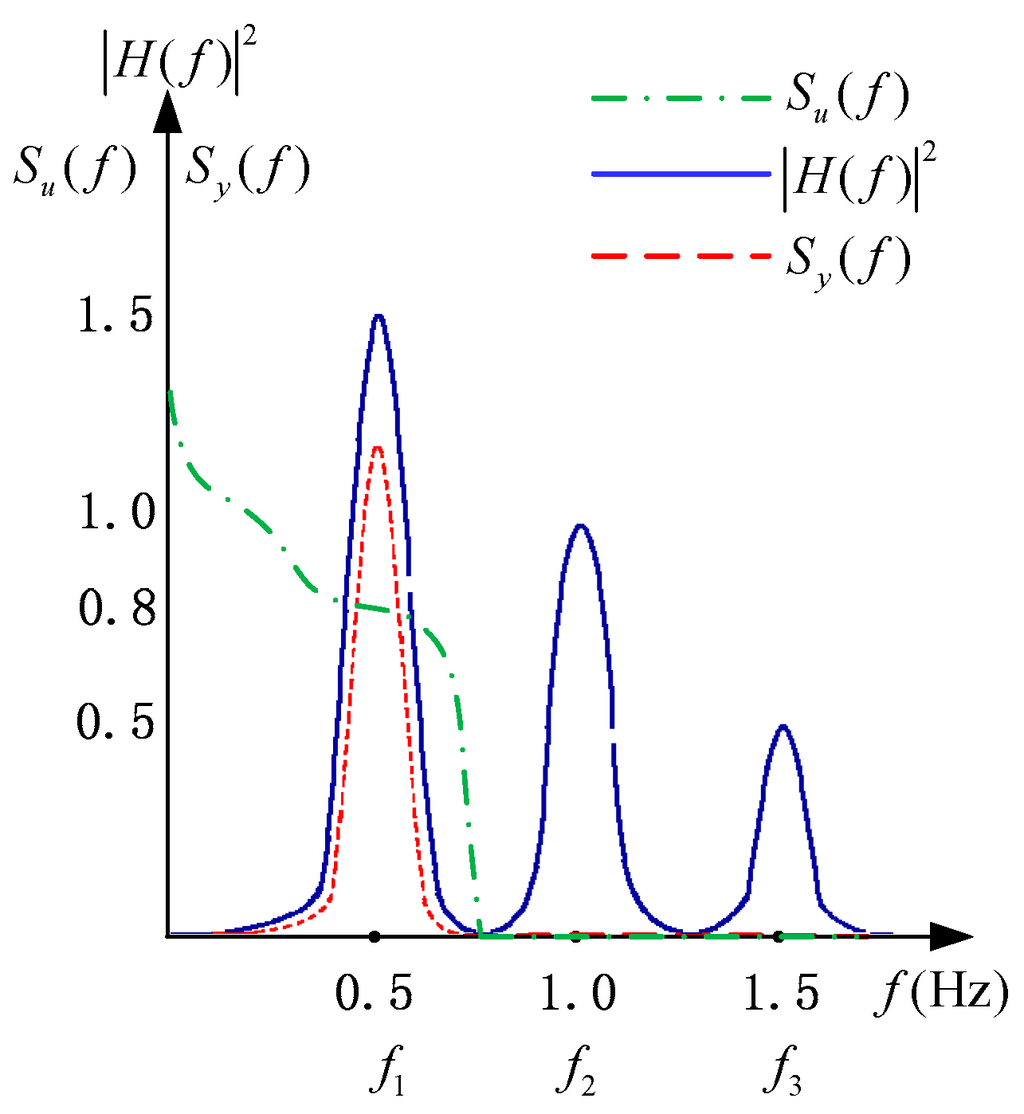 where is the frequency-domain transfer function of the linear system; is the PSD of the input stationary random process; is the PSD of the output stationary random process. The PSD describes how the power of a signal is distributed over the different frequencies [29]. For a high-order power system, it’s difficult to obtain an accurate value of . To solve this issue, we use Equation (3) to make a qualitative analysis instead of a quantitative analysis. According to Equation (3), the frequency-domain property of the system response depends on the frequency-domain property of the input random excitation and the squared amplitude-frequency property of the transfer function.