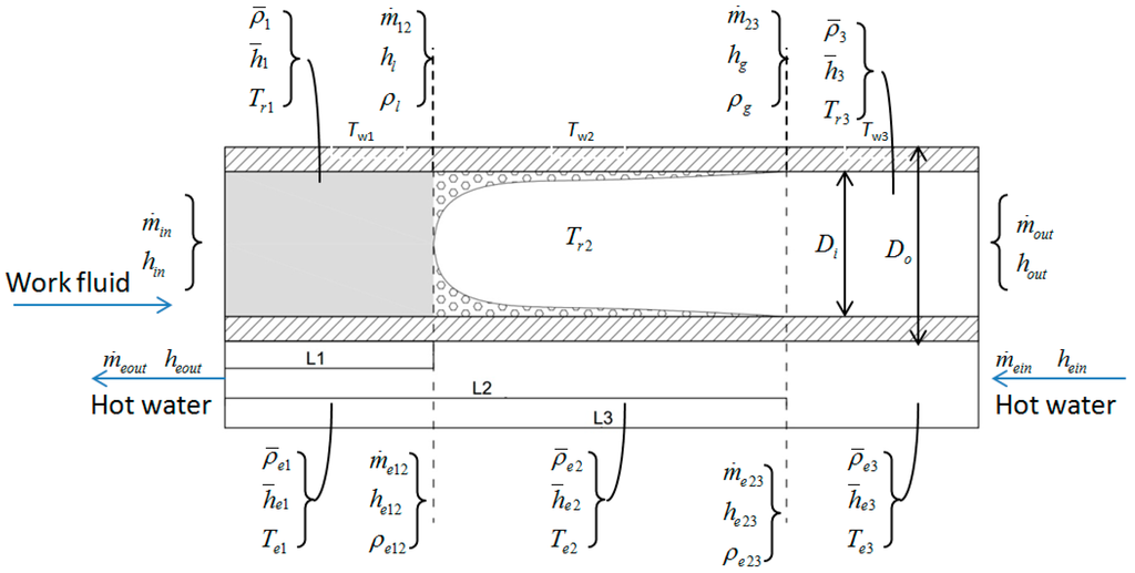 Accordingly, the calculation about hot water is also divided into three regions. Mass balance for the first region corresponding to subcooling region: