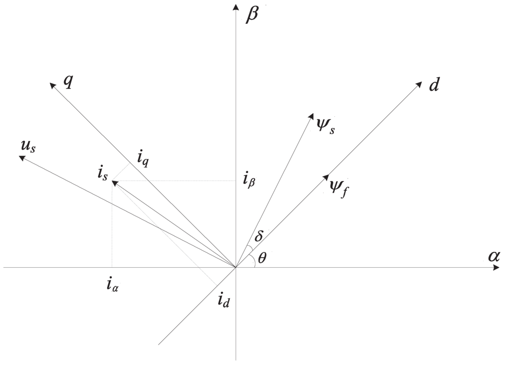 A diagram of the space vector of direct-driven surface-mounted permanent magnet synchronous generator (D-SPMSG).