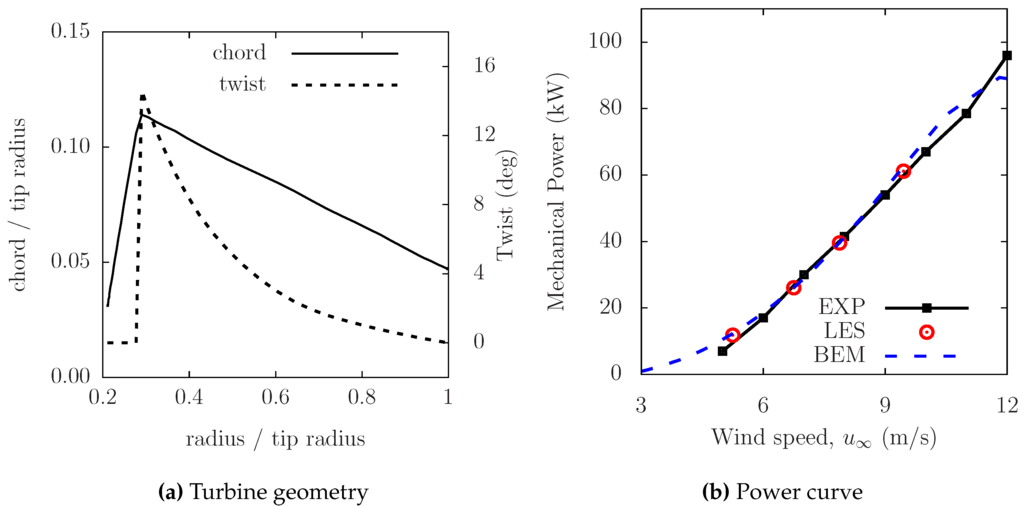 - Wu, Y.T.; Porté-Agel, F. Large-eddy simulation of wind-turbine wakes: Evaluation of turbine parametrisations. Bound. Layer Meteorol. 2011, 138, 345–366. [Google Scholar] [CrossRef]