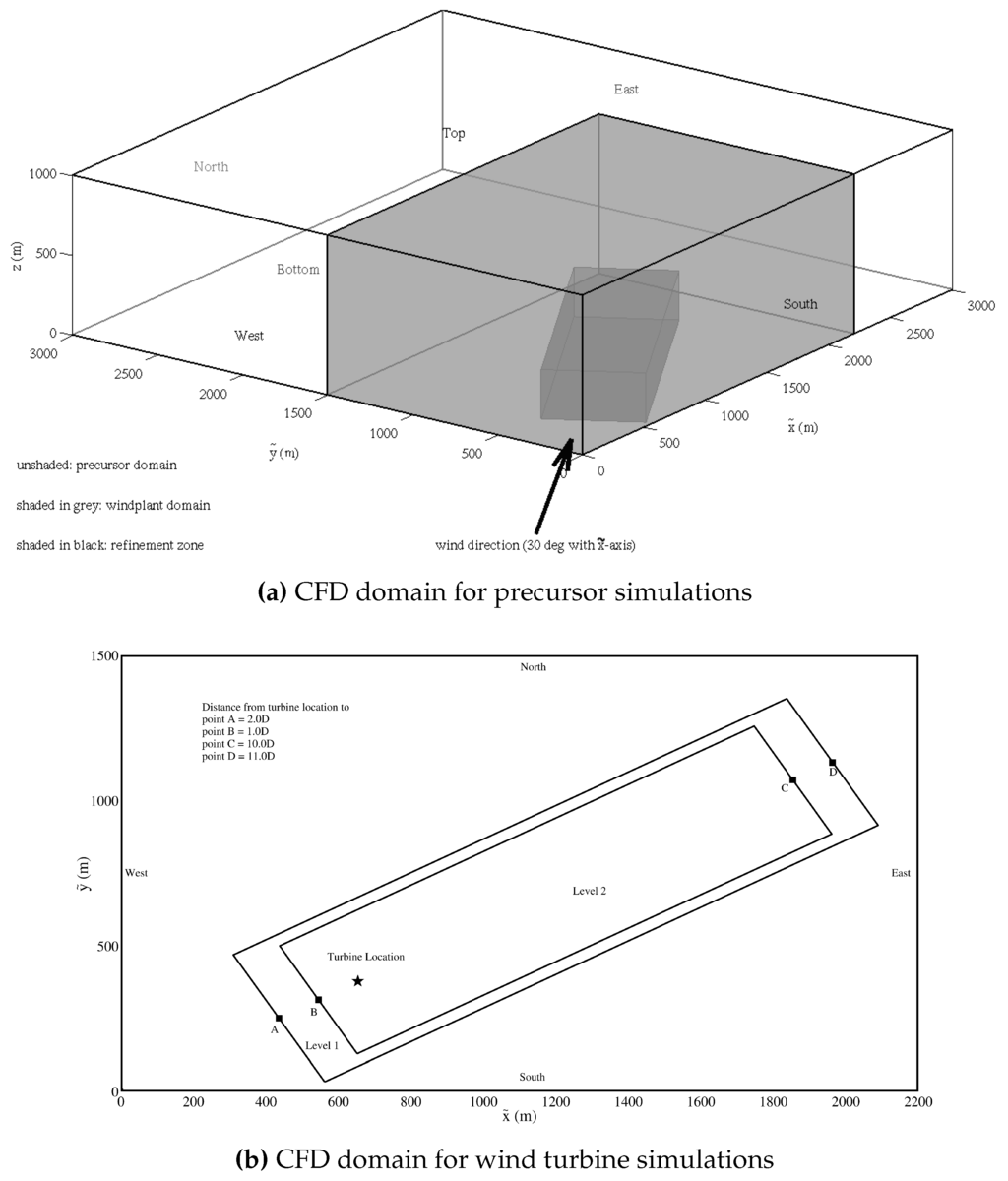 - Churchfield, M.; Lee, S.; Moriarty, P. A Large-Eddy Simulation of Wind-Plant Aerodynamics. In Proceedings of the 50th AIAA Aerospace Sciences Meeting including the New Horizons Forum and Aerospace Exposition, Nashville, TN, USA, 9–12 January 2012; 2012. [Google Scholar]