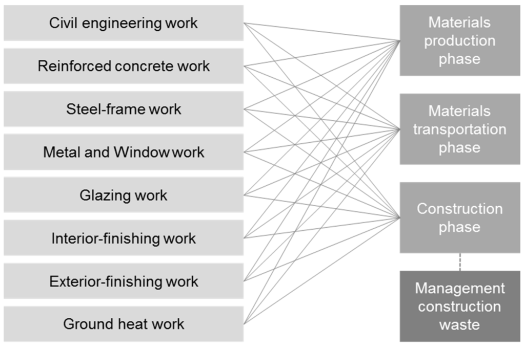 While the life cycle of buildings is usually divided into the production of materials, transportation of materials, construction phase, operational and maintenance phase, and dismantling and disposal phase [