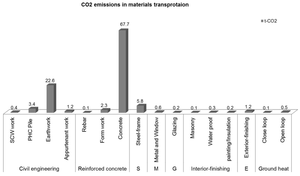 2 emissions from the ready-mixed concrete transportation of reinforced concrete works showed the highest figure with 68.7 (t-CO