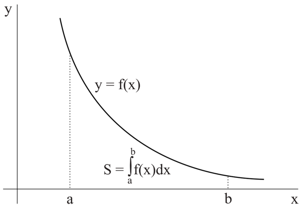 Surface S confined by continuous curve y = f(x), x-axis, and vertical lines x = a and x = b, if f(x) ≥ 0 for a ≤ x ≤ b (Figure 1), as the definite integral of the function f(x), obtains the following: