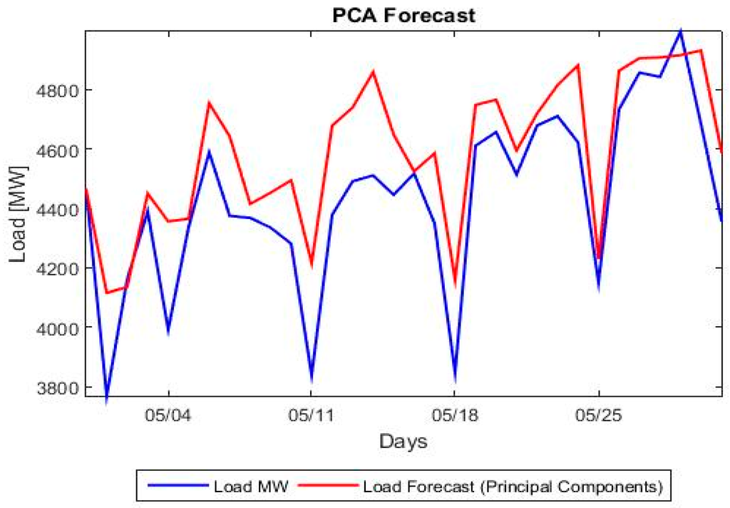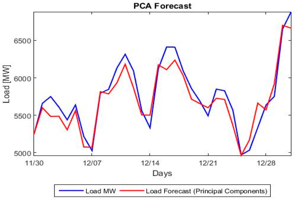 In this work we propose a new hybrid model, a combination of the manifold learning Principal Components (PC) technique and the traditional multiple regression (PC-regression), for short and medium-term forecasting of daily, aggregated, day-ahead, electricity system-wide load in the Greek Electricity Market for the period 2004–2014. PC-regression is shown to effectively capture the intraday, intraweek and annual patterns of load. We compare our model with a number of classical statistical approaches (Holt-Winters exponential smoothing of its generalizations Error-Trend-Seasonal, ETS models, the Seasonal Autoregressive Moving Average with exogenous variables, Seasonal Autoregressive Integrated Moving Average with eXogenous (SARIMAX) model as well as with the more sophisticated artificial intelligence models, Artificial Neural Networks (ANN) and Support Vector Machines (SVM). Using a number of criteria for measuring the quality of the generated in-and out-of-sample forecasts, we have concluded that the forecasts of our hybrid model outperforms the ones generated by the other model, with the SARMAX model being the next best performing approach, giving comparable results. Our approach contributes to studies aimed at providing more accurate and reliable load forecasting, prerequisites for an efficient management of modern power systems.