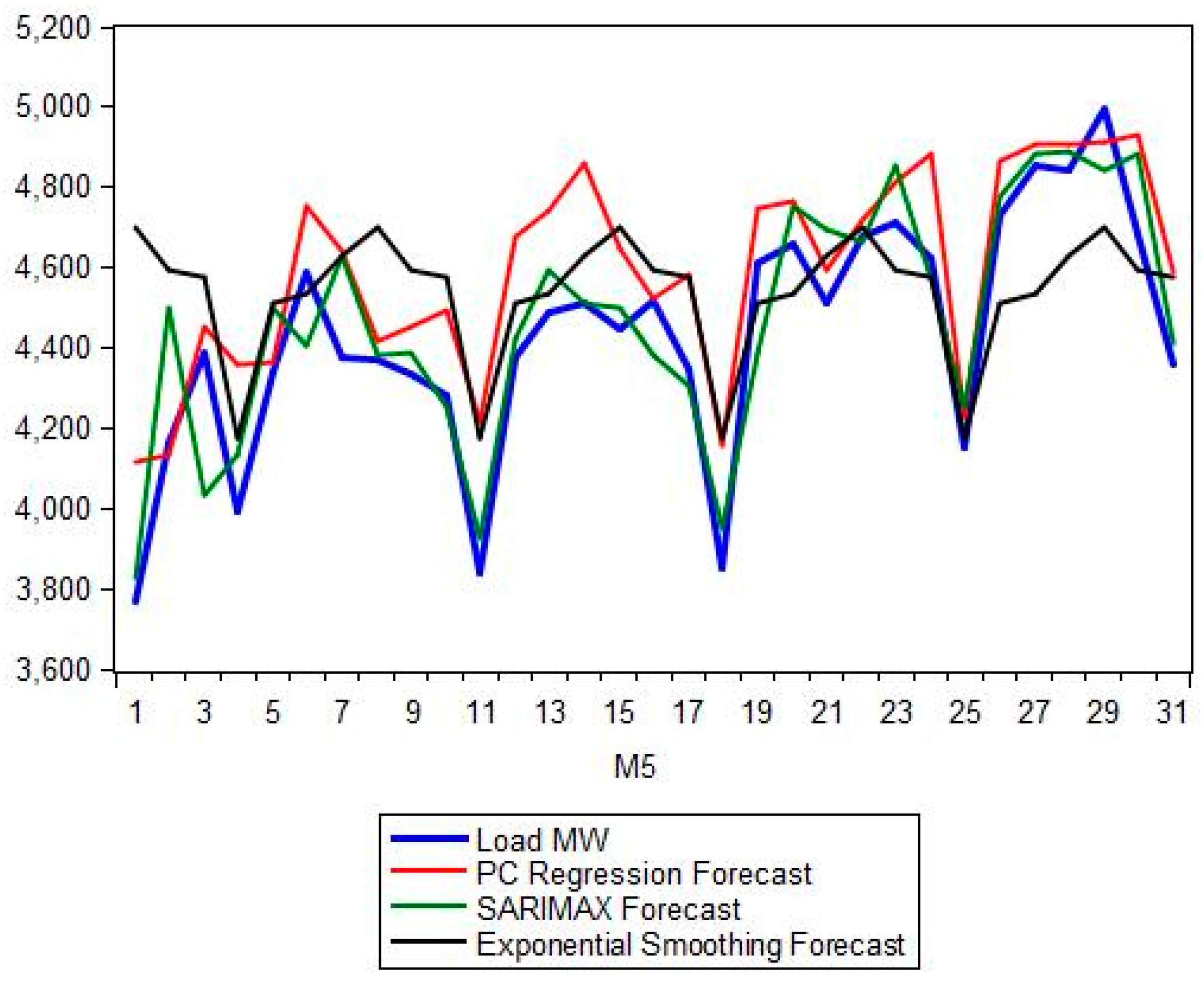 - Taylor, J.W.; De Menezes, L.M.; McSharry, P.E. A comparison of univariate methods for forecasting electricity demand up to a day ahead. Int. J. Forecast. 2006, 22, 1–16. [Google Scholar] [CrossRef]