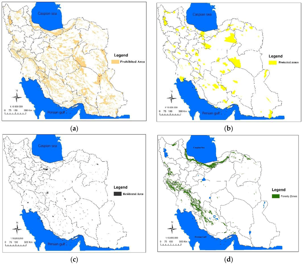 - Regions located closer to the minimum distance determined for the criteria of cities and populated centers (the minimum distance should be 2000 m from cities and 500 m from villages)