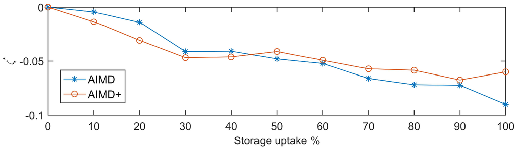 The performance index for AIMD storage and for AIMD+ storage control against storage uptake.