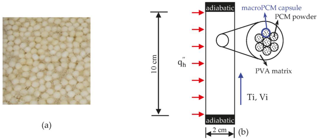 Investigated target and physical model: (a) Investigated target (macroPCM wall tile); (b) Physical model (macroPCM wall tile) (not to scale).