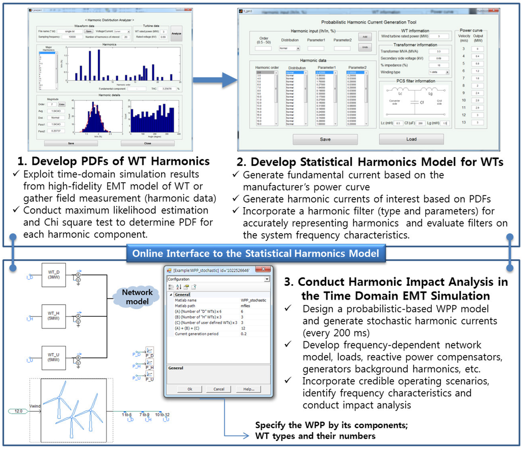 High penetrations of variable renewable sources into the electric power grid present a range of unprecedented grid operations and planning challenges requiring new study approaches and tools, so that the impacts of the proposed WPP can be properly assessed prior to interconnection. The proposed framework of interfacing statistical harmonics generation in the frequency domain and representation in the time domain simulation environment should be conceptually extended to other planning studies, especially those having harmonics and resonance issues. The research should help take advantage of prior knowledge to handle variability and offer opportunities for striking a balance between the technical and economic aspects of grid planning and operations.