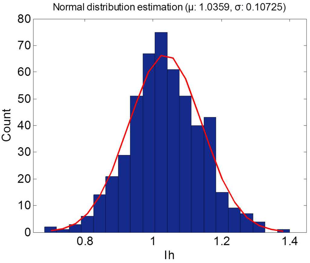 Example of maximum likelihood estimation (MLE) based on the histogram data. Current measurement at a certain harmonic order takes the normal distribution for which the parameters of the average and standard deviation are estimated.
