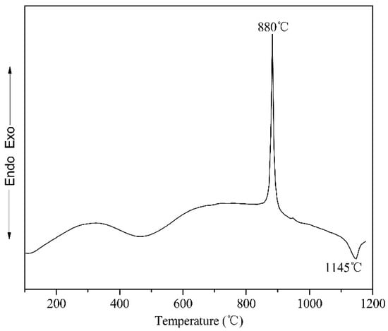 Figure 5 shows one exothermic peak close to 880 °C and one endothermic peak close to 1145 °C. An exothermic peak in a DSC curve can generally be attributed to a transition from disordered to ordered, the recrystallization of original components from the amorphous phase or the formation of a new compound from the ball-milled amorphous powders. Therefore, subsequent X-ray analysis of the ball-milled powders annealed at different temperatures is used to further analyze occurrences in the heating process in more detail. The powder mixtures transform completely to the amorphous state after ball milling for 96 h. Therefore, it seems feasible that the transition from disordered to ordered produced the exothermic peak in the DSC curve. In fact, only the amorphous peak is observed in the XRD pattern of the 96 h ball-milled powder after annealing for 24 h at 700 °C. No diffraction peaks for Dy