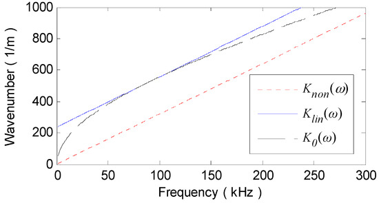 To further deduce the time-domain sensor signal of linear-dispersion from Equation (4), the corresponding wavenumber can be defined by linearizing as its first-order Taylor series expansion around [28]