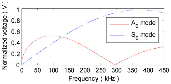 Theoretical amplitude-frequency response of A0 and S0 modes in the aluminum plate.