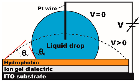 - Mugele, F.; Baret, J.-C. Electrowetting: From basics to applications. J. Phys. Condens. Matter 2005, 17, 705–774. [Google Scholar] [CrossRef]