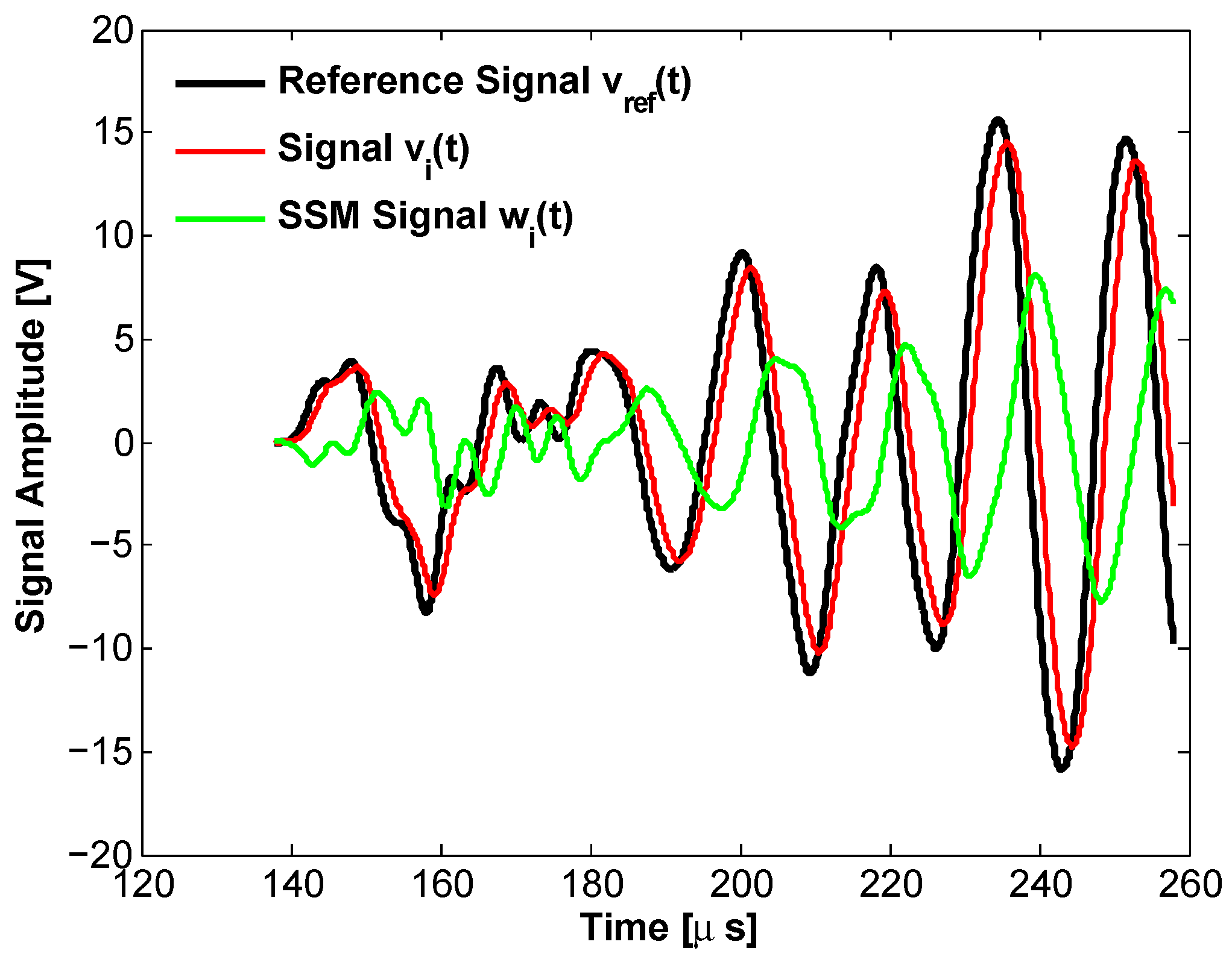 - computing the “scaled-subtracted signals” obtained as the difference in time between the actual output signals at the various excitation amplitudes and the reference signals at the same amplitudes: ; examples are reported in Figure 8;