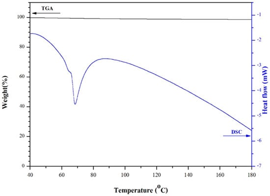 Phase transition temperatures of the synthesized VO2, with and without doping, as well as glass transition temperature (Tg) and melt transition temperature values of the polymer composites were investigated by using a DSC technique. Typically, about 15 mg of the sample was used and the DSC experiment was carried out with a NETZSCH (DSC 204, NETZSCH, Watertown, MA, USA) instrument under a nitrogen atmosphere at a heating rate of 10 °C/min over temperatures ranging between 0 and 200 °C. Percentage crystallinity (Xc) of the samples was calculated according to Equation (4):