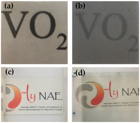 Progress in the developments of VO2 for smart thermo-chromic coatings has been recently reviewed by Wang et al. [5]. Various aspects related to the development of the materials have been discussed, including the fabrication process of VO2 films, strategies for improving thermo-chromic properties, and the future research directions. In terms of the fabrication processes, various methods can be used to prepare the VO2 thermo-chromic coating glass, including sol-gel [6], sputtering deposition [7] and chemical vapor deposition [8]. The gas phase techniques are superior in term of the precise control of process parameters and film features (thickness, microstructure). However, complex equipment is usually required. On the other hand, the sol-gel method is of low cost and feasible for metal doping. Recently, an alternative solution-based process for preparing VO2 thin film, namely the “polymer-assisted deposition (PAD) process” has been developed [9,10,11]. VO2 film with a greater transparency (40%–84%) has been claimed. This technique is interesting and might be used to fabricate smart glass at a laboratory scale. However, to fabricate larger-sized smart glass for industrial use, a different manufacturing process needs to be developed.