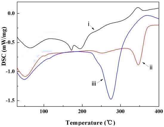 Figure 5. Differential scanning calorimeter (DSC) heating curves of (i) the raw material; (ii) the extracted cellulose; and (iii) the CNCs.