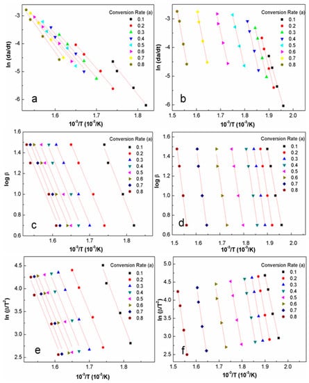 After introducing the heating rate, β = dT/dt, into Equation (5), Equation (6) is obtained as: