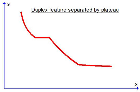 Arising from distinct crack nucleation modes indicated later on, the S-N curve may exhibit a complex feature known as the duplex feature. As schematically shown in Figure 2, there appears a plateau part separating the two parts for low-to-medium cycle fatigue failure and for medium-to-high cycle fatigue failure in the S-N curve.
