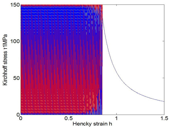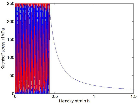 As explained in [26,27,37], fatigue failure effects may be automatically incorporated as inherent constitutive features of the new model. Here, the essential point lies in the fact that, from a phenomenological standpoint, the physical essence of material failure would be just loss of the stress-bearing capacity attendant with fully developed plastic flow. The conditions expressing this fact have been presented in [26] in a general constitutive framework. The plastic indicator and the stress limit q given in Equations (6) and (9) are just particular forms meeting these general conditions.